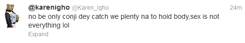 Toh!! Mr right , if you are out there .. please turn yourself up .. Karen needs your "good good loving" not nice Lol